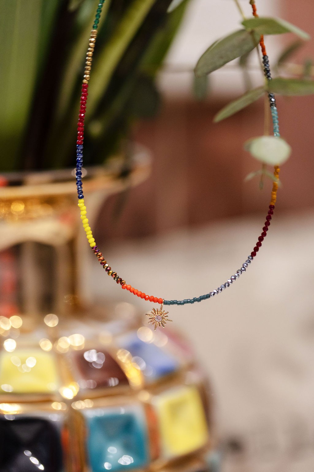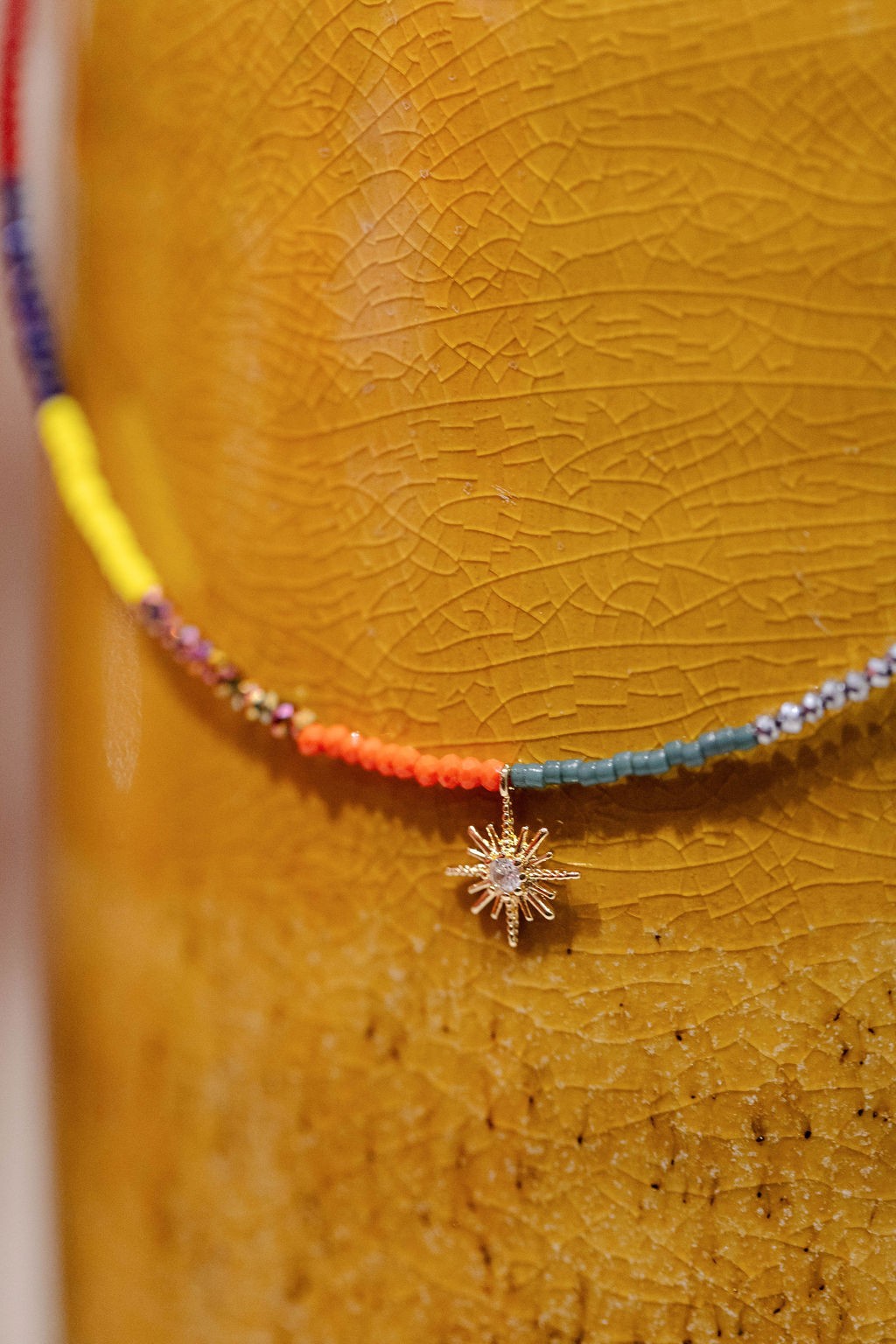 Fin et délicat, ce collier ras de cou est réalisé avec des minis perles multicolores.