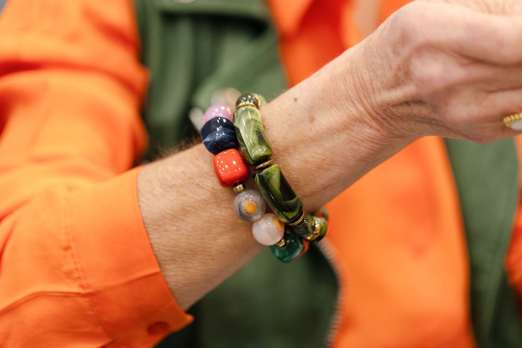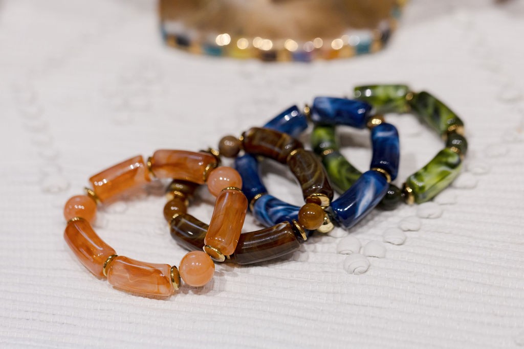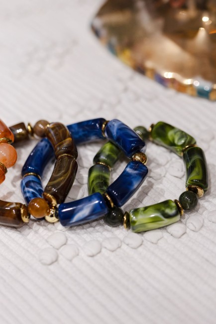 Bracelet monté sur élastique en résine et hématite.
