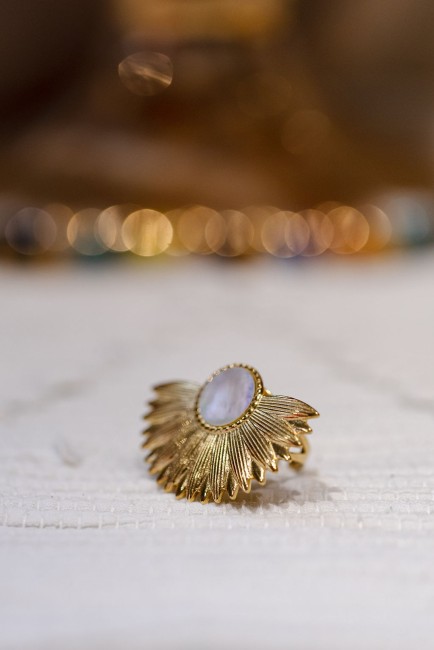 Bague en acier inoxydable doré et nacre.