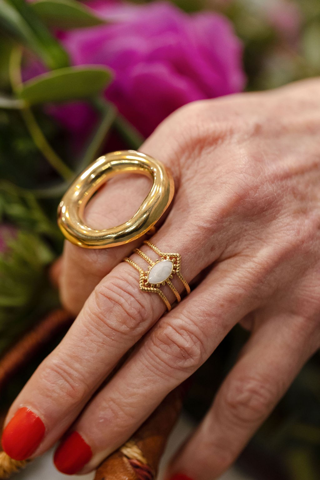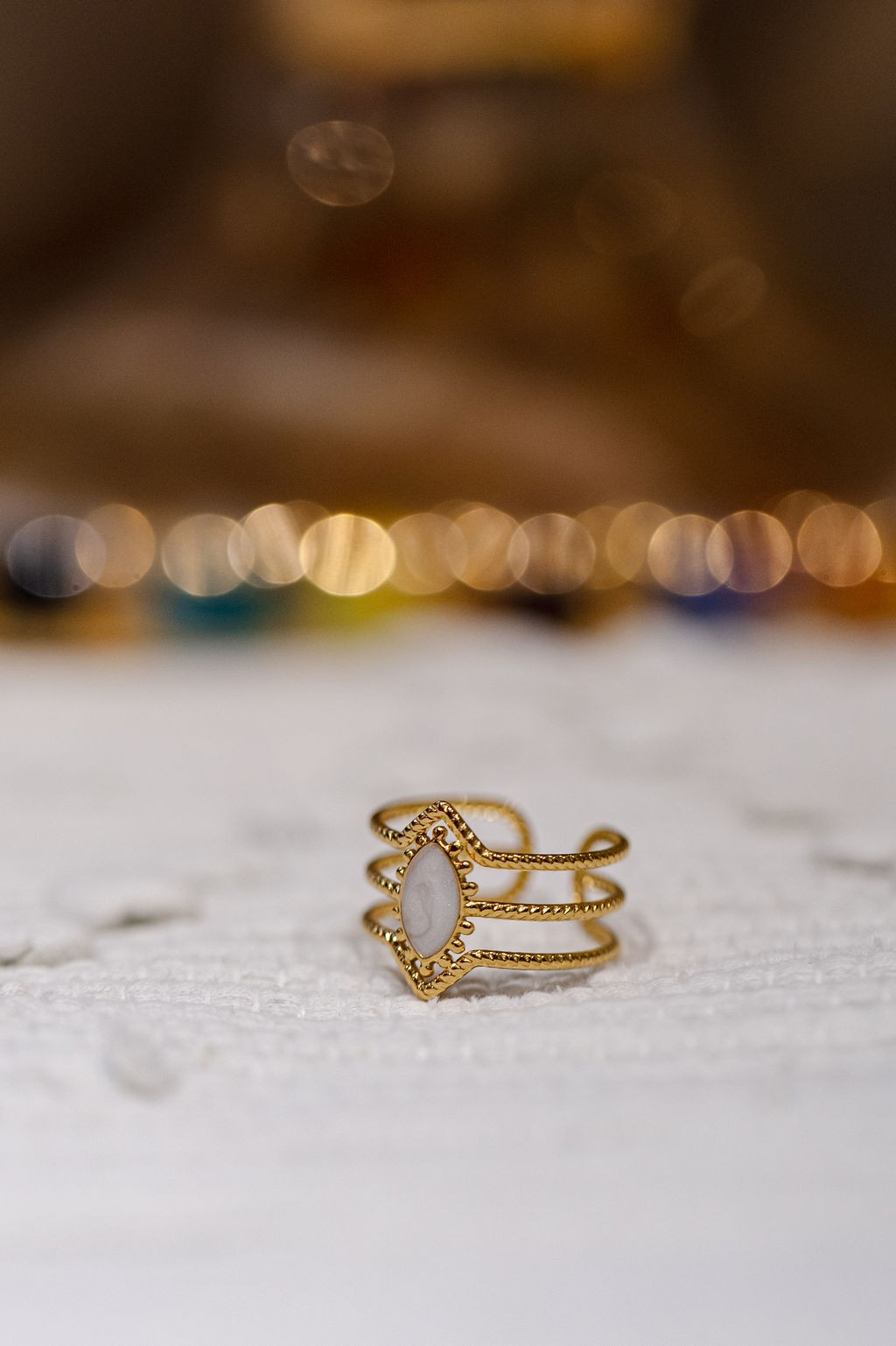 Bague triple rangs, émaillée en acier inoxydable doré.
