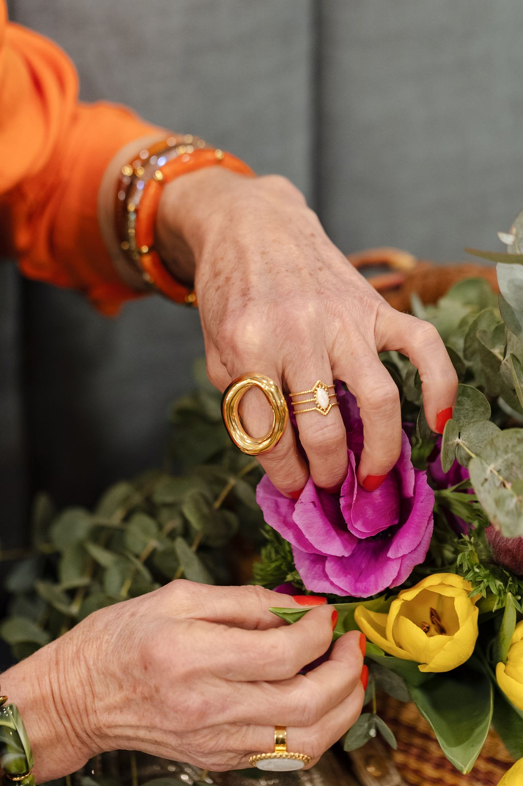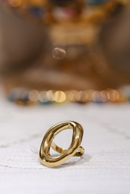 Bague ovale en acier inoxydable doré.